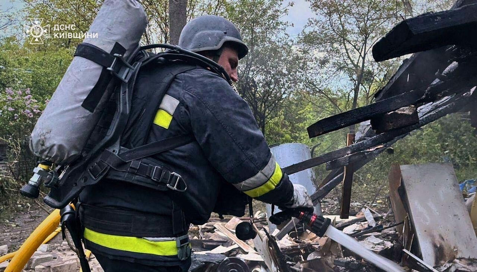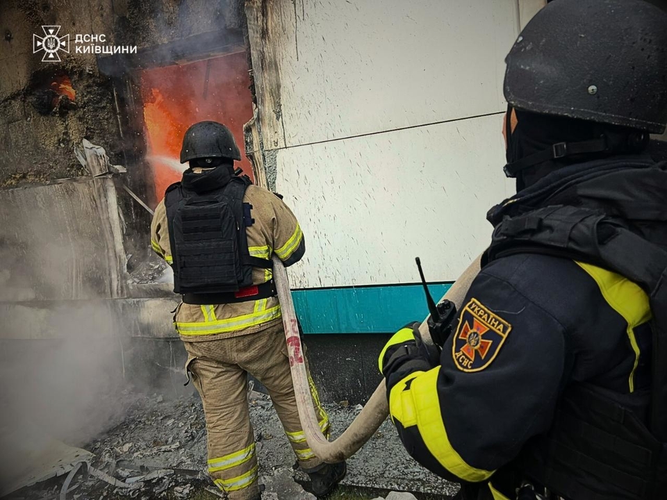 En un asentamiento del distrito de Fástiv, un almacén de 500 metros cuadrados, ubicado en los terrenos de una empresa local, quedó destruido. Un edificio de servicios públicos también sufrió daños parciales.
