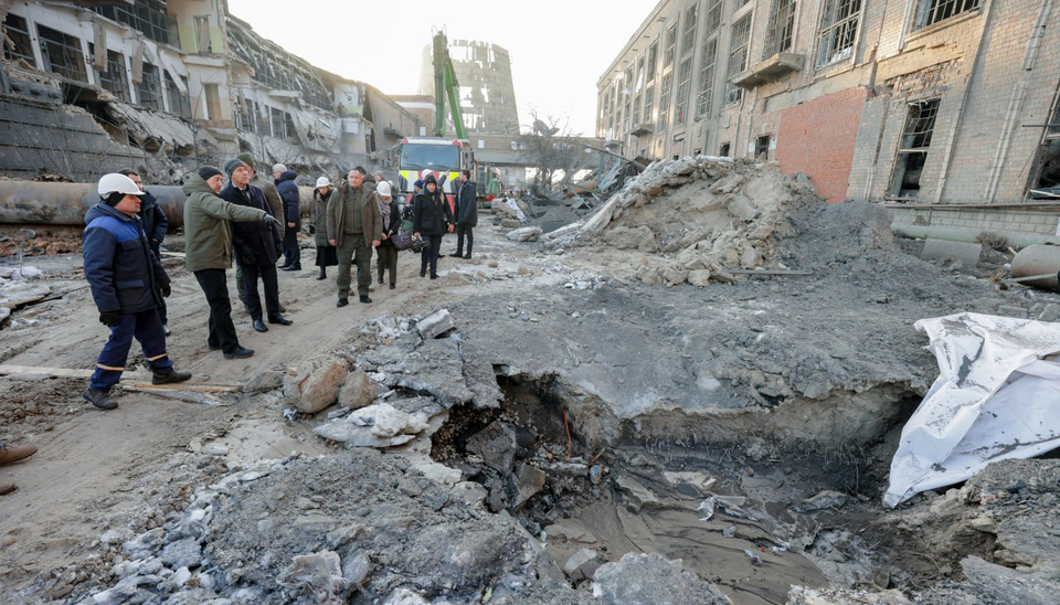 Shmygal muestra a Rutte las consecuencias del ataque ruso a una de las centrales térmicas de Kyiv